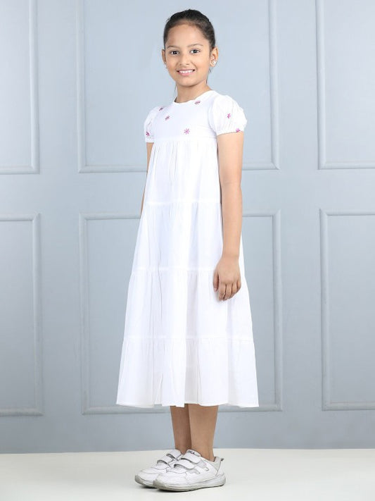 Girls Cotton Embroidered A-Line Tiered Dress [ TEST PRODUCT ]