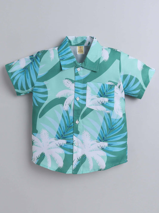 Boys Green Leaf Print Shirt with White Bottom – Casual Set - Pure, Chemical-Free Kidswear