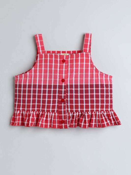 Aww Hunnie Check Yog Front Button 100% Cotton Top - Pure, Chemical-Free Kidswear